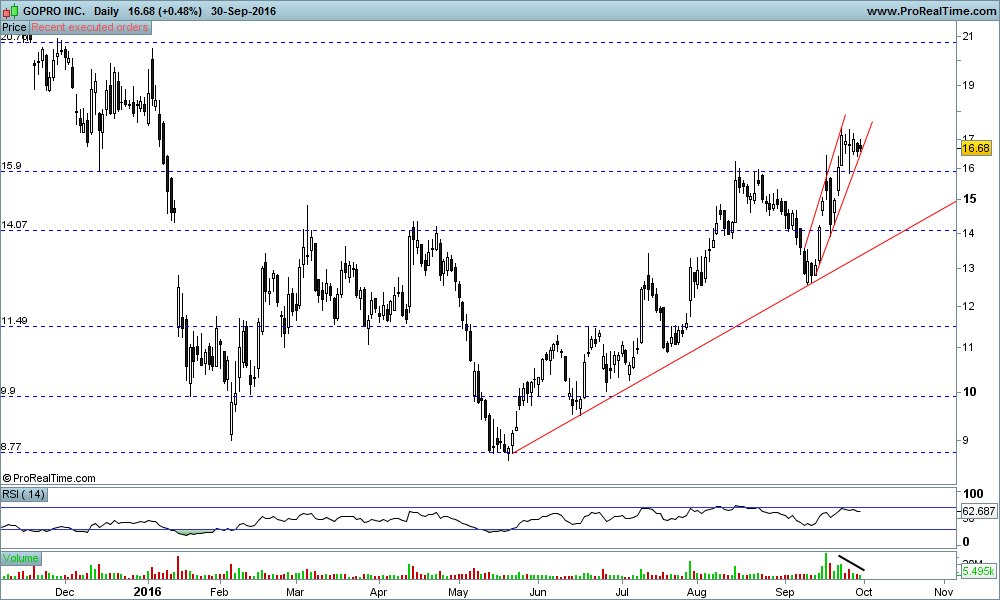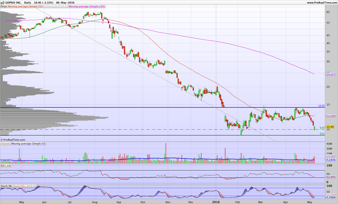 Actualizando a Gopro, depois de ter aguentado o suporte e numa altura em que sobe +10% no seguimento da apresentação de resultados, pode vir a testar os $14 num futuro próximo (falta a vela de hoje) :