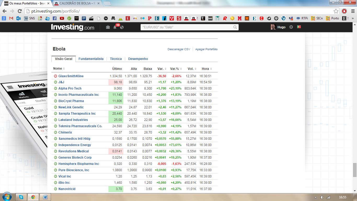 As duas empresas que referi ontem no blogue, que estavam a valorizar com a epidemia do vírus ébola, hoje tiveram mais uma forte valorização.