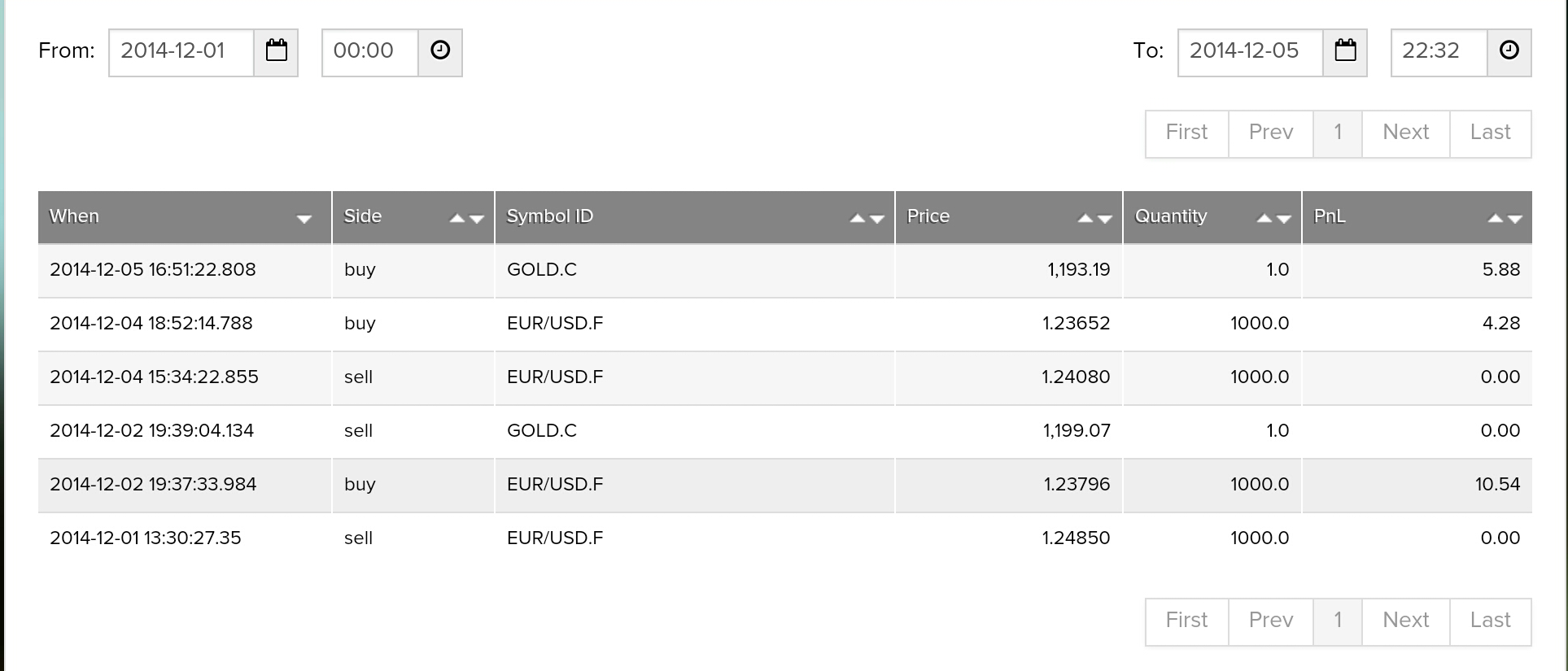 Para acompanharem o progresso, segue a tabela de trades executados.