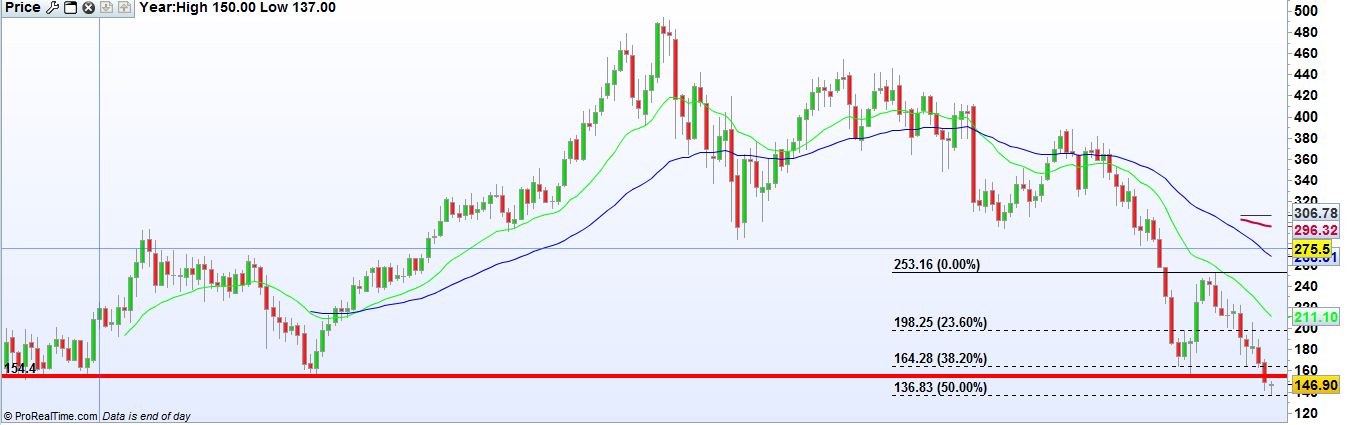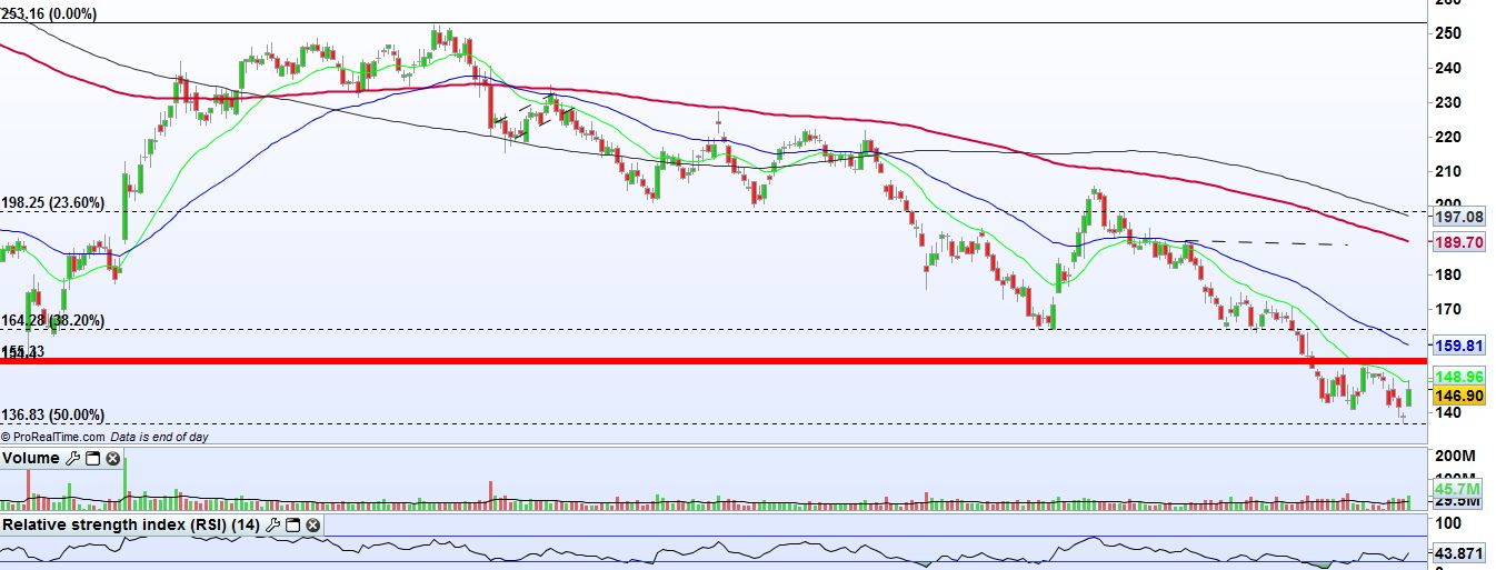 O que vejo é a cotação colada à EMA200, se romper pode muito bem ir até aos 300...
