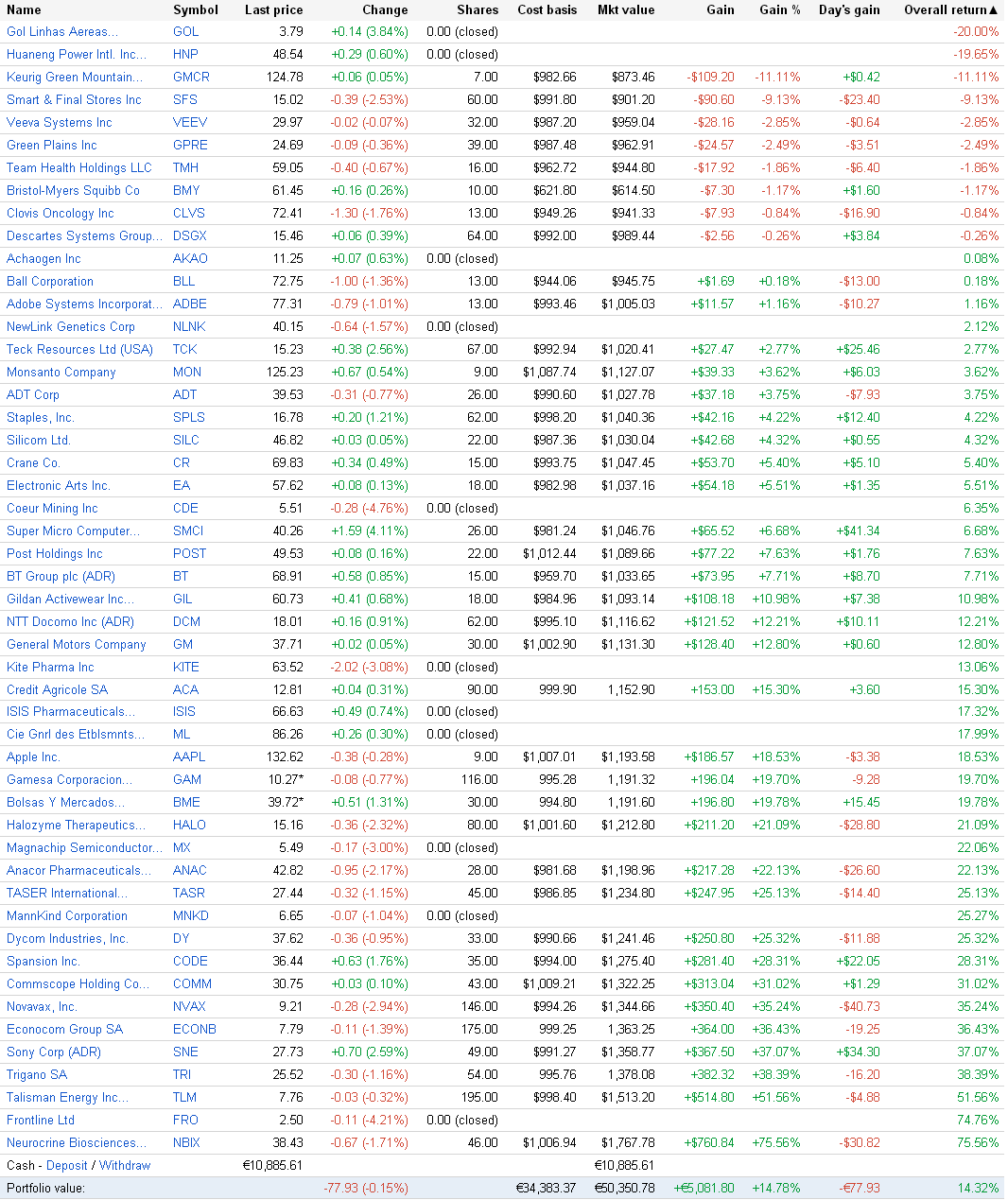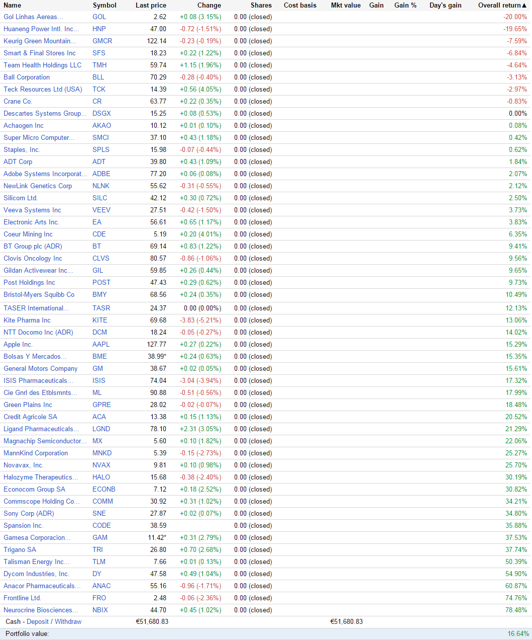 Ricardmag, Viva! construiste uma carteira de position trading e com stops alargados, a montante e a jusante, dado o BETA elevado da maioria das ações. Agora de "passiva" a carteira realmente não tem nada. Frontline? Great balls of fire...