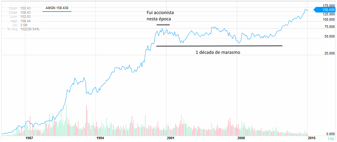 Eu cá votei na Amgen, da qual já fui accionista nos tempos áureos das dotcom. A Amgen até se deu bem durante o crash do Nasdaq, mas a verdade é que depois esteve 10 anos sem ir a lado nenhum, porquê?