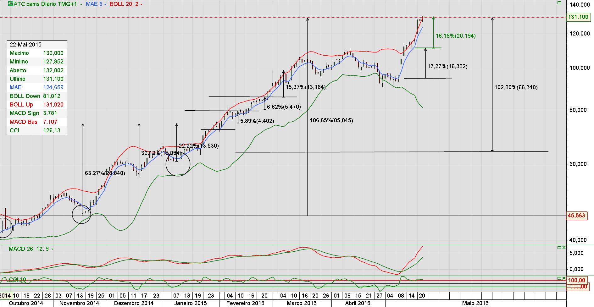 As setas e sinais são basicamente fatos e comunicados ao mercado e a reação na cotação.