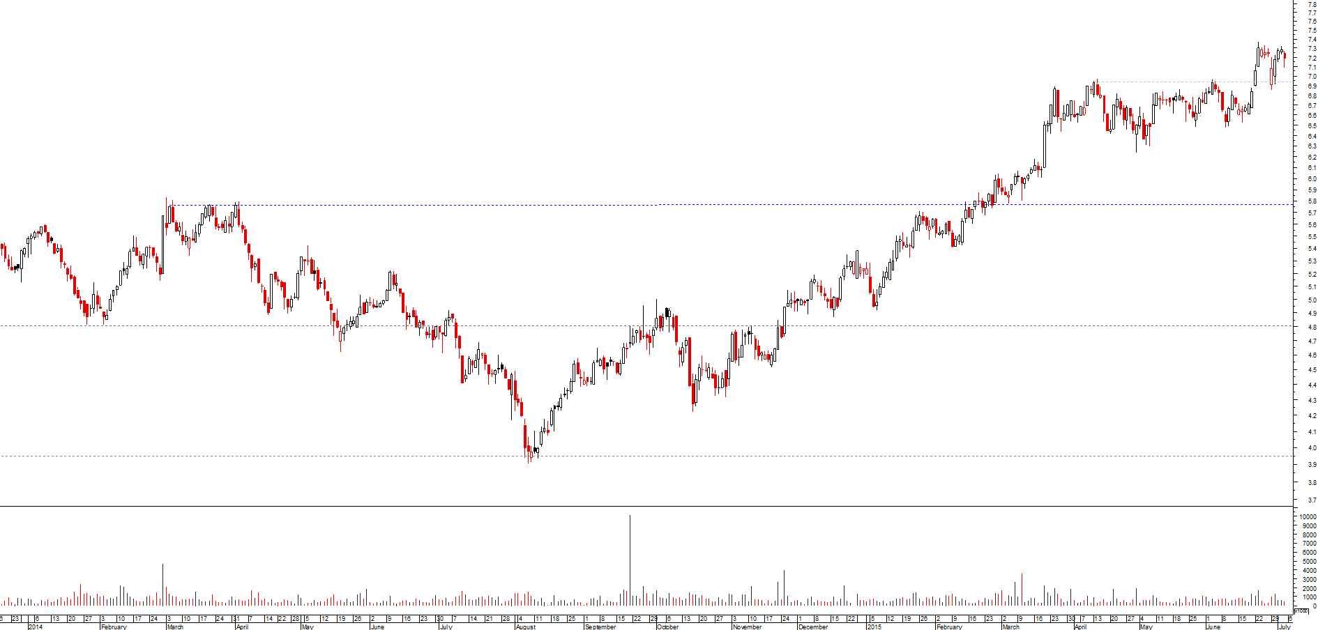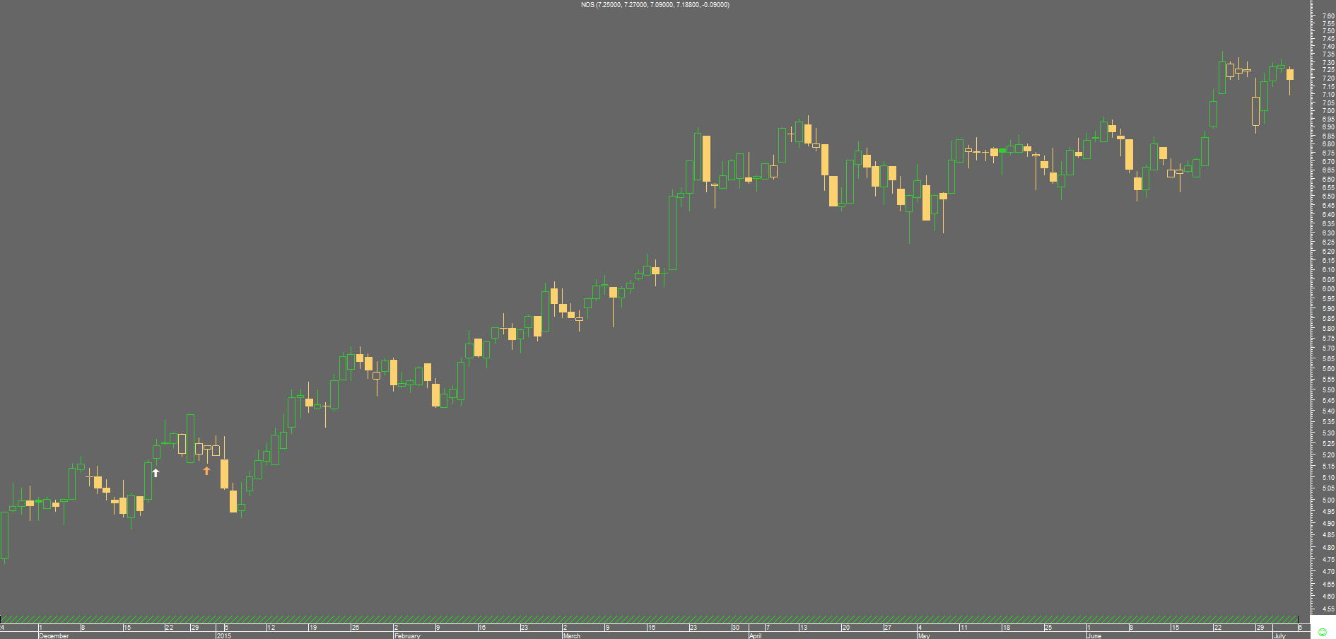 a propósito de uma recente troca de ideias no tópico da NOS, ocorreu-me dar a ver quatro abordagens da cotada: Elder, Donchian, e duas versões TF, uma discricionária e outra mecânica