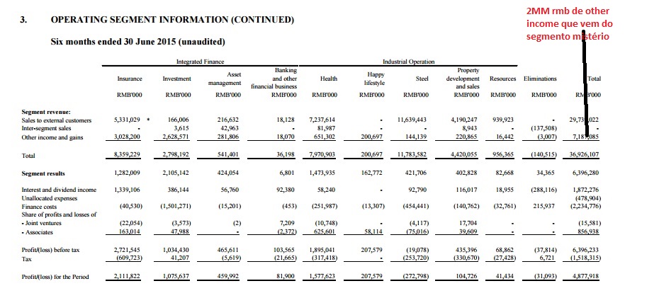 só para complementar a imagem acima onde diz que há 2mm de other income que vem do segmento mistério dizer que na dr há 9mm e na atribuição de segmentos apenas 7mm, verifica-se face ao ano anterior o aumento em 3x desta rubrica propelido pela bolha da bolsa que agora rebentou ( dados no h1 de 2015)
