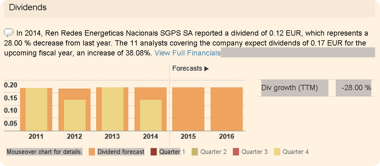 Previsões do FT sobre os dividendos a pagar pela REN em 2016.