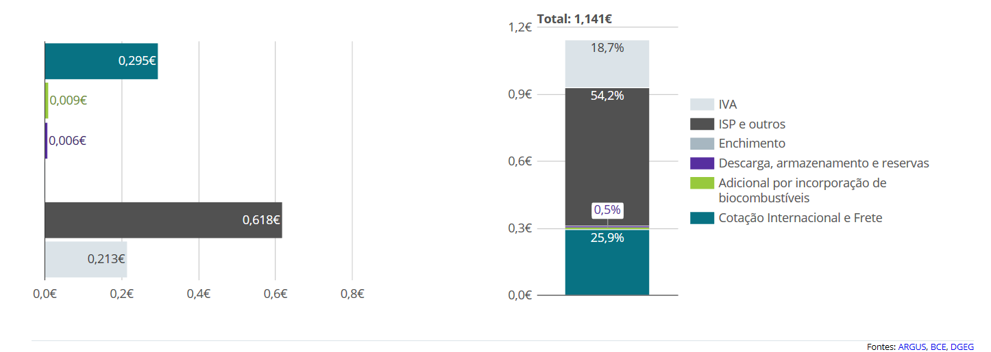 Cenário semelhante ocorreu na gasolina, com valor de referência nos 1,14 euros e com apenas 29 cêntimos atribuídos à matéria-prima. Queiram reparar que a diferença de preço entre gasóleo e gasolina não está relacionada de sobremaneira com a matéria-prima. A diferença vem dos mais 20 cêntimos de ISP que este combustível paga! A termo comparativo, o ISP em 2008 era de 28 cêntimos por litro de gasóleo. Se este imposto se tivesse mantido inalterado, o preço do gasóleo em bomba rondaria hoje os 67 cêntimos por litro!