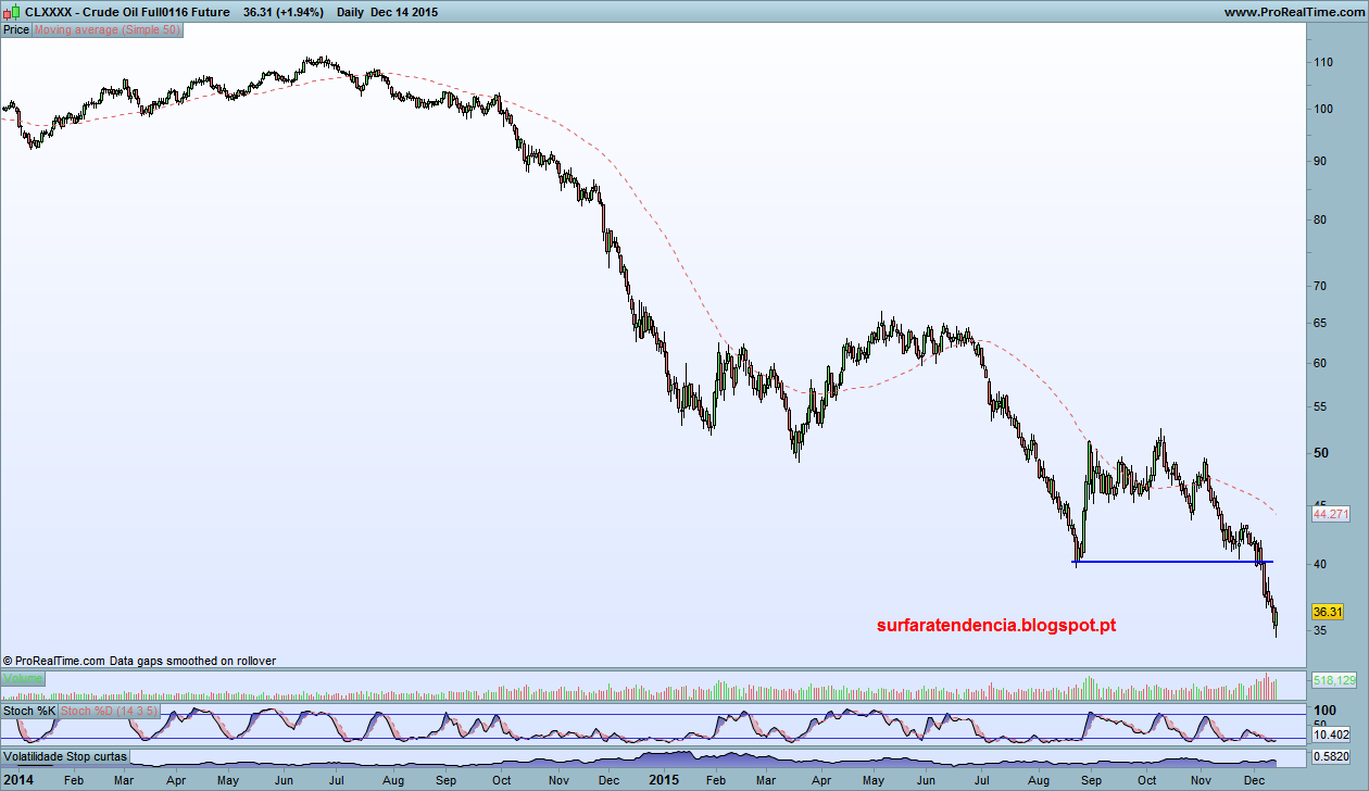 - De facto a ideia não é apanhar o fundo, mas sim (como disse o Marco) evitar que se esse fundo aconteça não nos afecte de sobremaneira. De qualquer forma, eu ainda sou do tempo em que se dizia que o petróleo ia a 10 dólares e não tardou nos 100. E que o Dax valia 1000 pontos. E que o Banif valia 10 cêntimos... Diz-se muita coisa nos mercados financeiros, mas eles têm uma grande capacidade de ignorar os analistas e mostrarem vontade própria. Não quero com isto dizer que tal cenário se repita no petróleo, mas não vou arriscar uma parte do orçamento familiar se tal acontecer. Se mostrar sinais de inversão, avanço com o hedging.