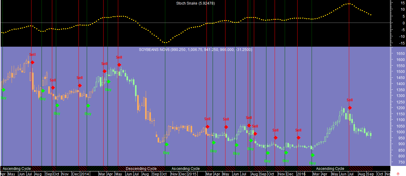 Outra questao curiosa prende-se com a aparente boa calibragem dos sinais na componente oscilatória, que aparentemente terao detetado um mínimo cíclico do mercado da Prata na 6ª feira passada como se pode ver no 3º gráfico abaixo.