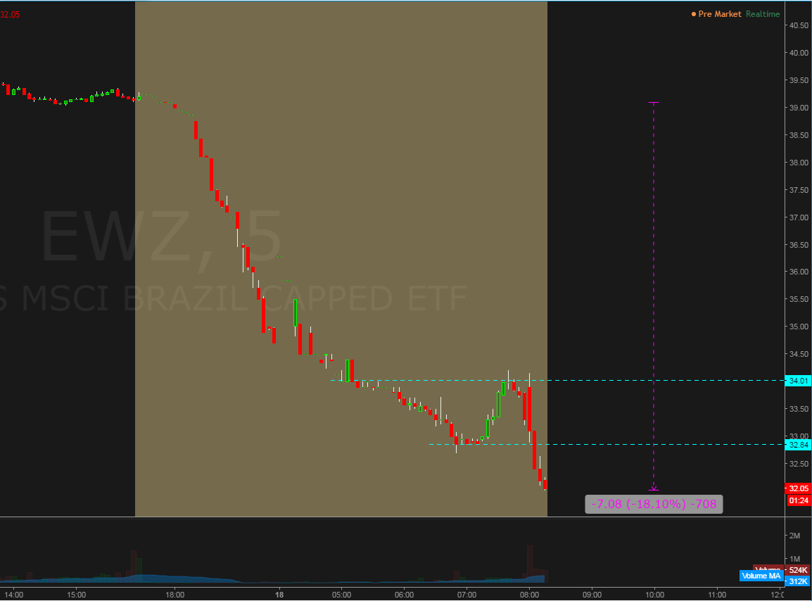 O ETF brasileiro (EWZ), que representa as acções com maior peso no índice Ibovespa, afunda mais de 14% após a saída da noticia.