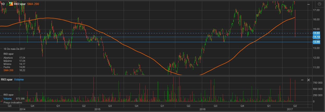 Sendo o catalisador de cariz político e de difícil resolução (uma vez que o Temer não renunciou imediatamente), penso que para entradas de médio/longo prazo será melhor aguardar um pouco. Para intraday, com certeza que estará tudo de olhos postos no Brasil, um autêntico faroeste nos próximos tempos