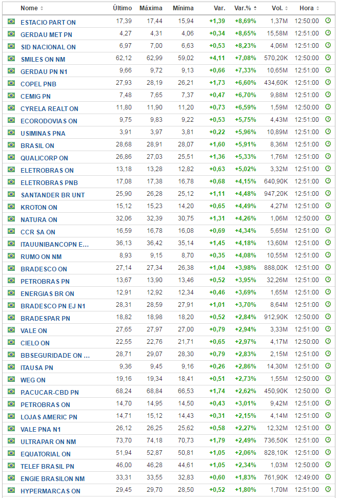 Dada a volatilidade e os consequentes riscos político/económicos do Temer, e para não temer o mercado, selecionei em 5/6 empresas sólidas ou no caso da Petrobras, secundada pelo preço da commodity e do turn around efectuado (vão atribuir dividendos pela primeira vez desde há 4 anos).