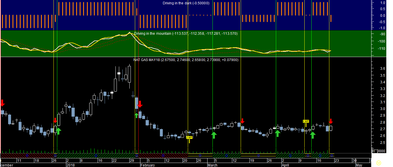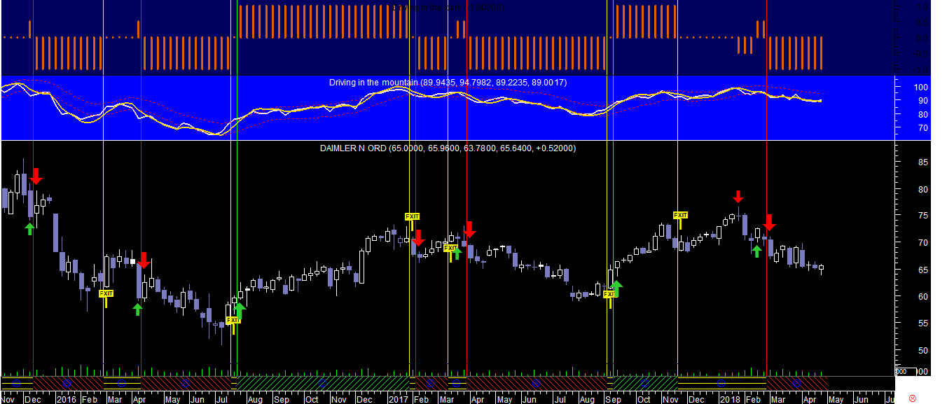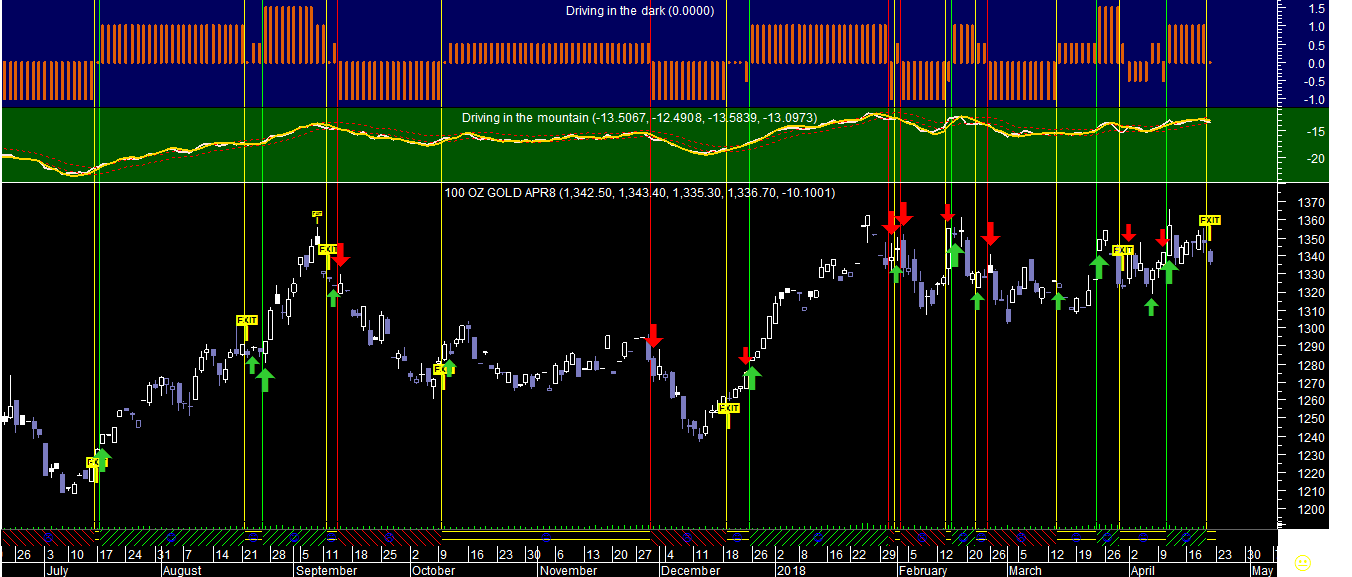 Na escala diária temos uma sequência disparatada de sinais com trades todas negativas devido ao facto do comportamento da Prata se resumir a um "trading range" totalmente lateralizado e na escala semanal os sinais já possuem um aspeto mais capaz devido ao comportamento direcional mais consentâneo com tendências.