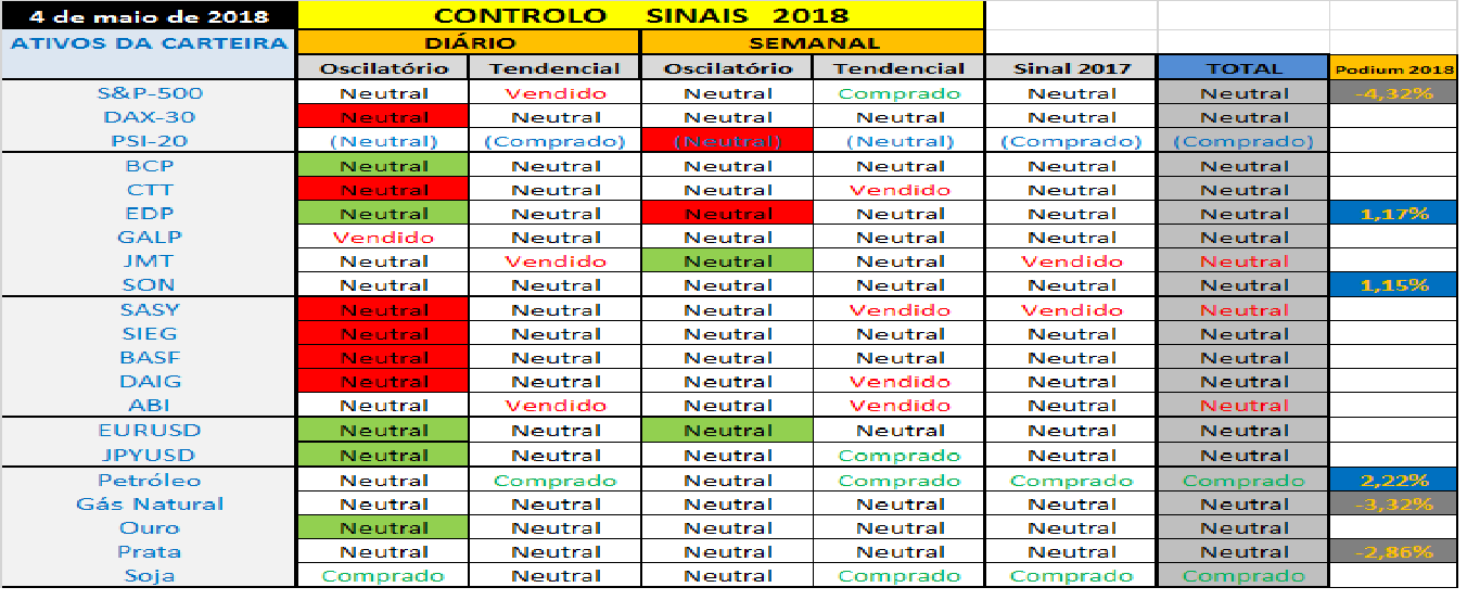 - No plano dos índices acionistas só falta o DAX dar um sinal convincente de viragem, que parece estar próximo.