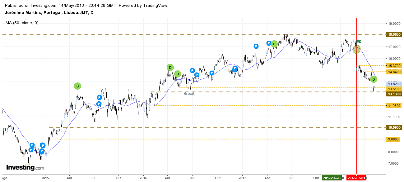 Ulisses Pereira Escreveu:A JM está a cair há quase um ano e quebrou suportes que eu fui definindo como muito relevantes. Um ano a cair, quebra de suportes relevantes e em mínimos dos últimos 2 anos, não creio que precise de mais justificações. A outra que me esqueci de colocar é a Ibersol.