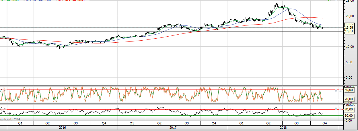 Na minha opinião a probabilidade maior nesta cotada é manter a tendência descendente , indo visitar o suporte dos 15 euros estabelecido em 2017 e ainda longe do forte suporte dos 10 euros onde andou durante muito tempo em 2016