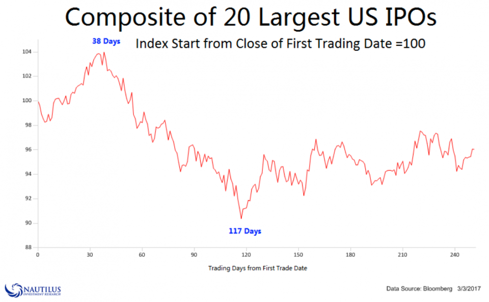 Ver gráfico da correção média USA no pós IPO. Ficaria surpreendido que a cotação estivesse acima dos 50usd (agora cota a 80,3usd), no final deste ano.