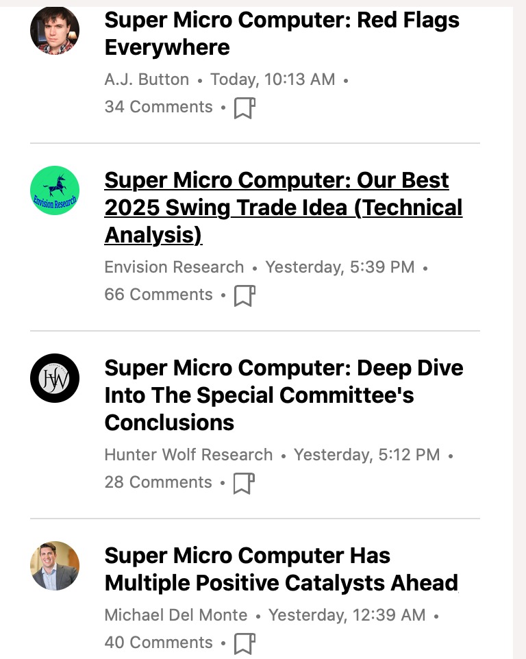 Obrigado pela indicação. Já agora, então em SMCI? Depois da confusão toda, não existe aqui uma oportunidade? No último mês foi mais de 100%