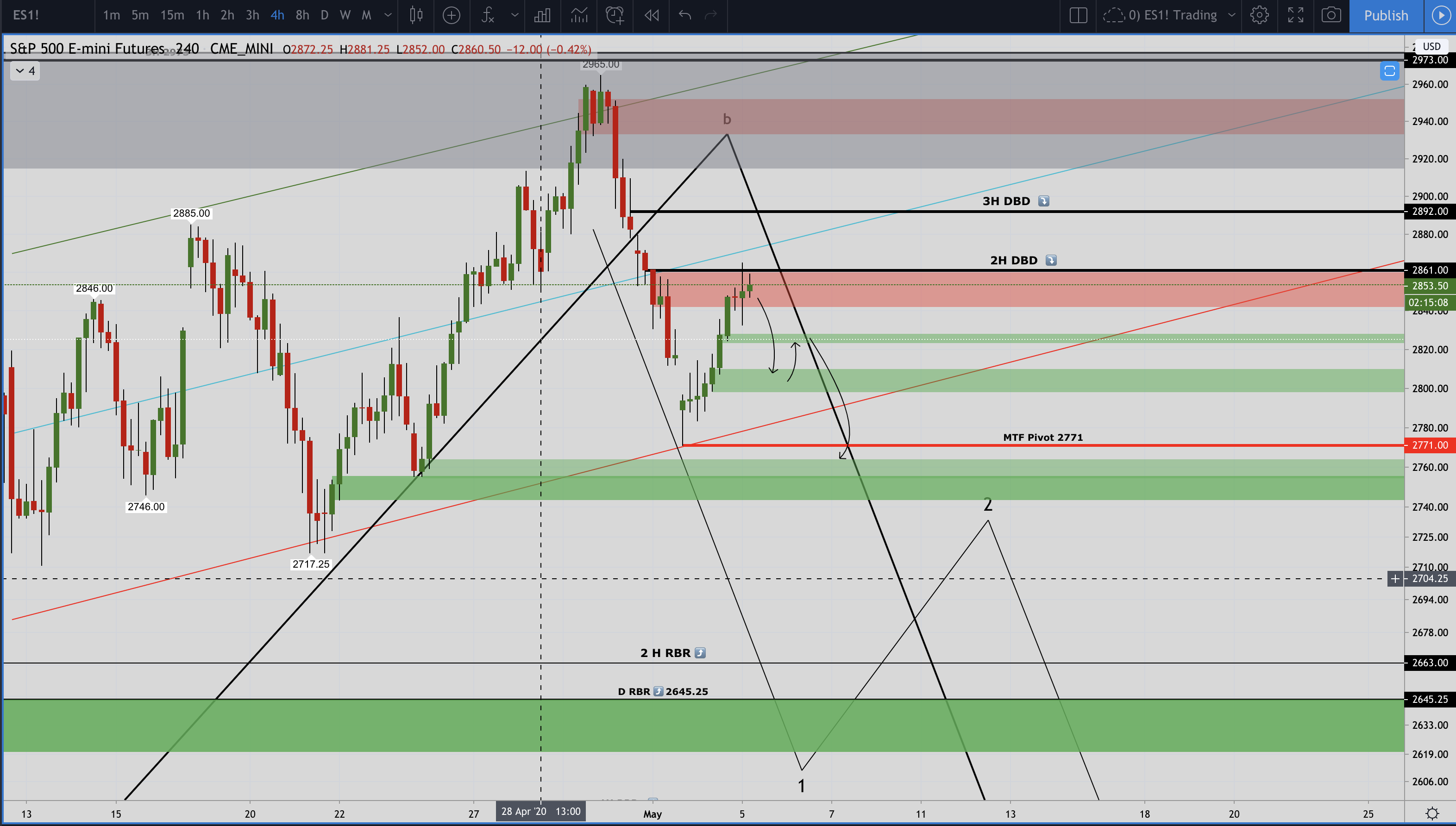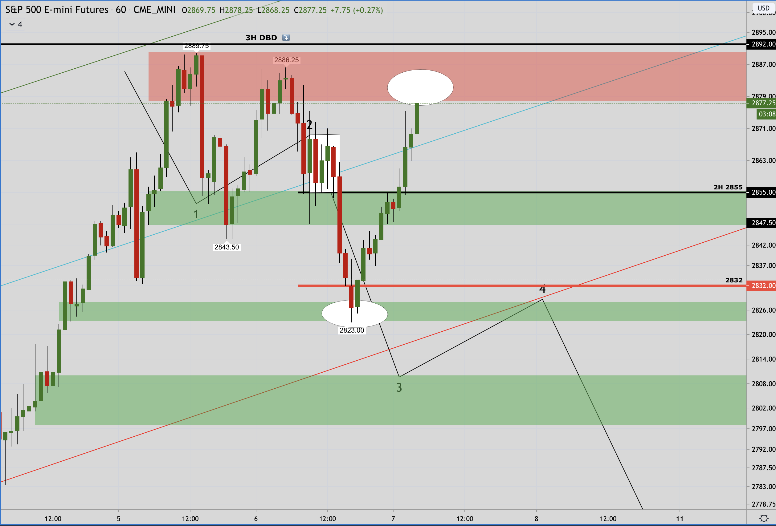 O movimento de hoje superou em muito a minha expectativa. Por enquanto a "respeitar" a zona de supply nos 2892. Se ultrapassada a zona, o movimento poderá chegar novamente aos 2940 ~2960.