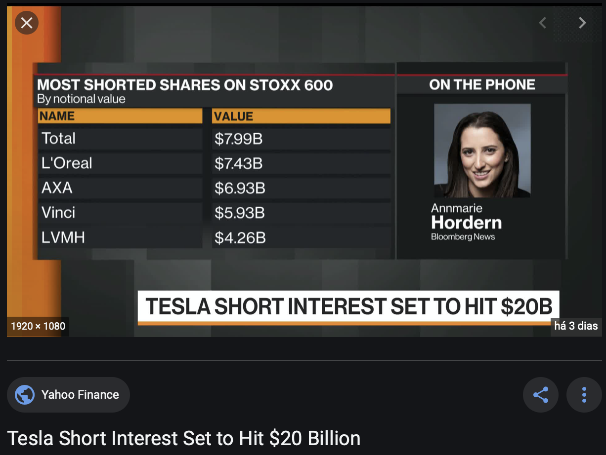 Tesla é a primeira empresa a chegar aos $20B short interest