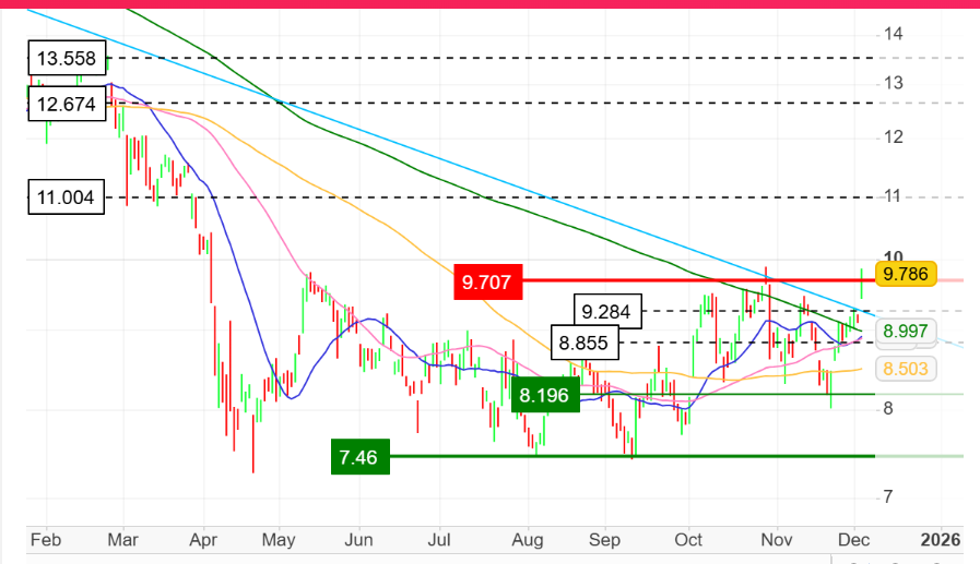 Hoje sobe forte e está mesmo em zona de forte resistencia. Se a superar tem muito a cavalgar em 2026.