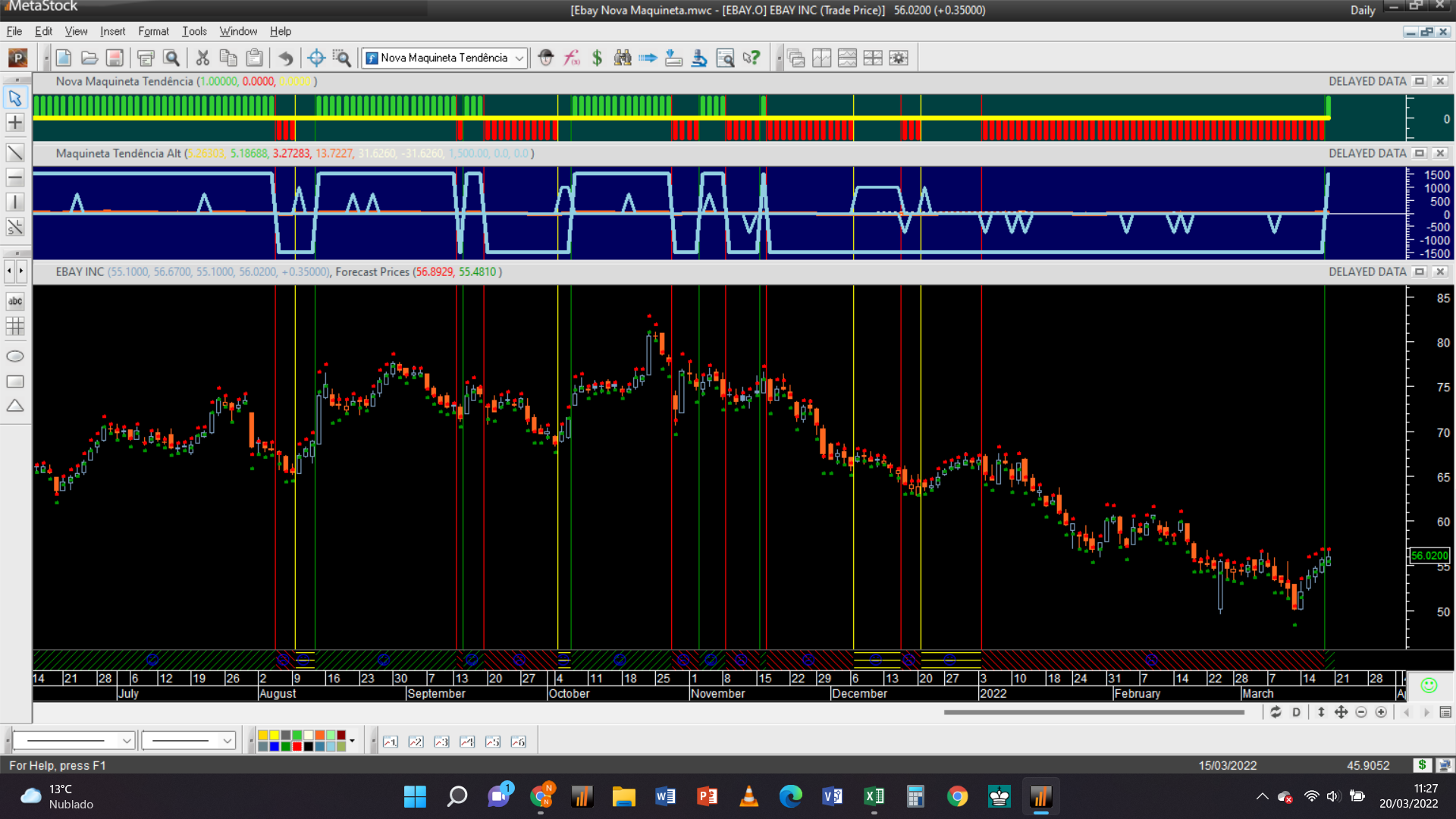 Hoje vou aqui fazer uma pequena atualização no caso da ASML e da E-Bay, que deram um sinal de compra na área tendencial do meu sistema de trading atual. A Google continua a aguardar melhores dias, por enquanto ainda mantém um sinal para não tocar no papel até ver melhores dias!