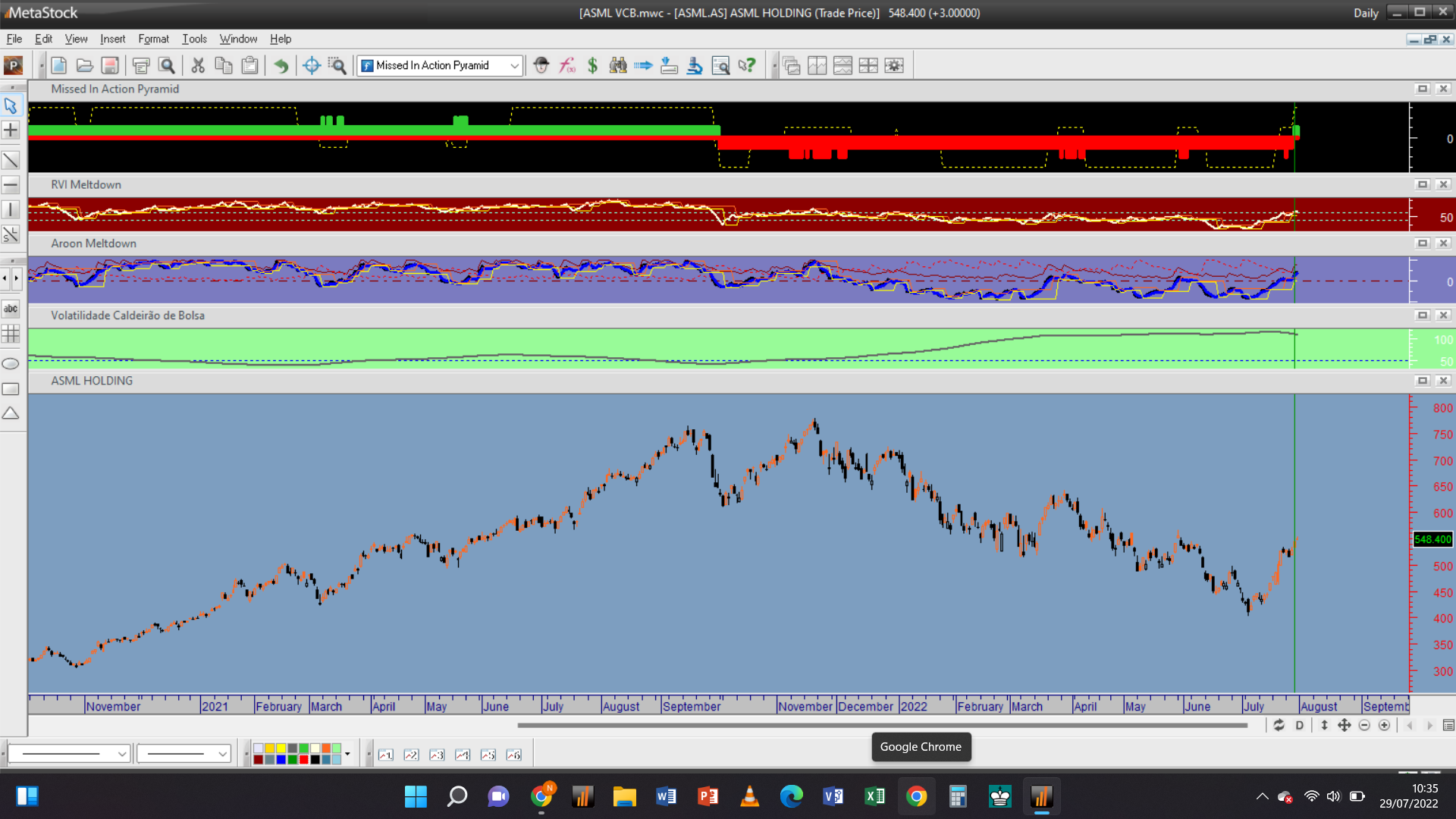 Neste final de sessão temos mais uma ordem de venda para despachar as ações da ASML, em termos técnicos o panorama não está nada brilhante.