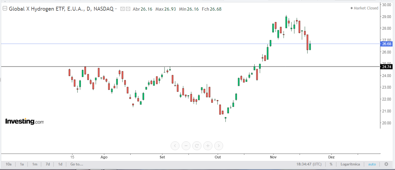 Em termos técnicos o hidrogénio tem dado alguns sinais interessantes, quer em acções e ETF's, mas será preciso sinais mais consistentes.