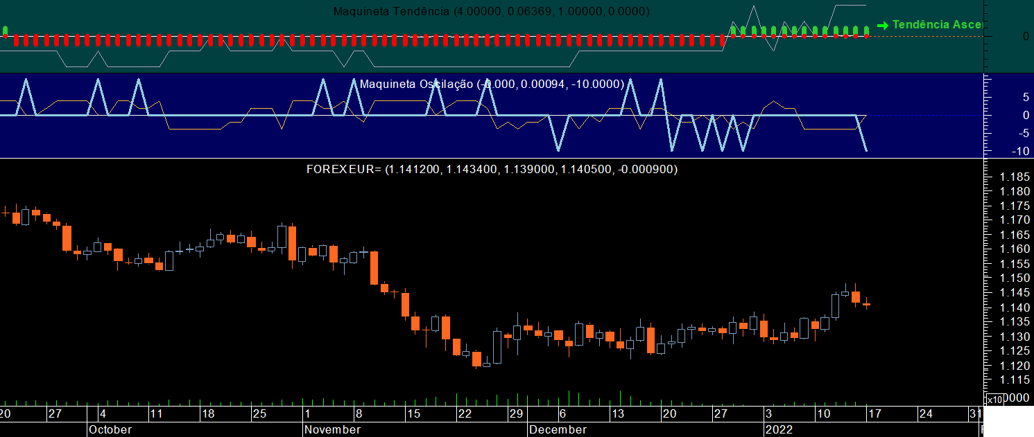 Fecho das posições curtas no EuroDollar através do 2º sinal de compra oscilatório consecutivo no gráfico de 15 minutos, ao preço de mercado que coincidiu com o fecho da respetiva barra nos 1,1364.