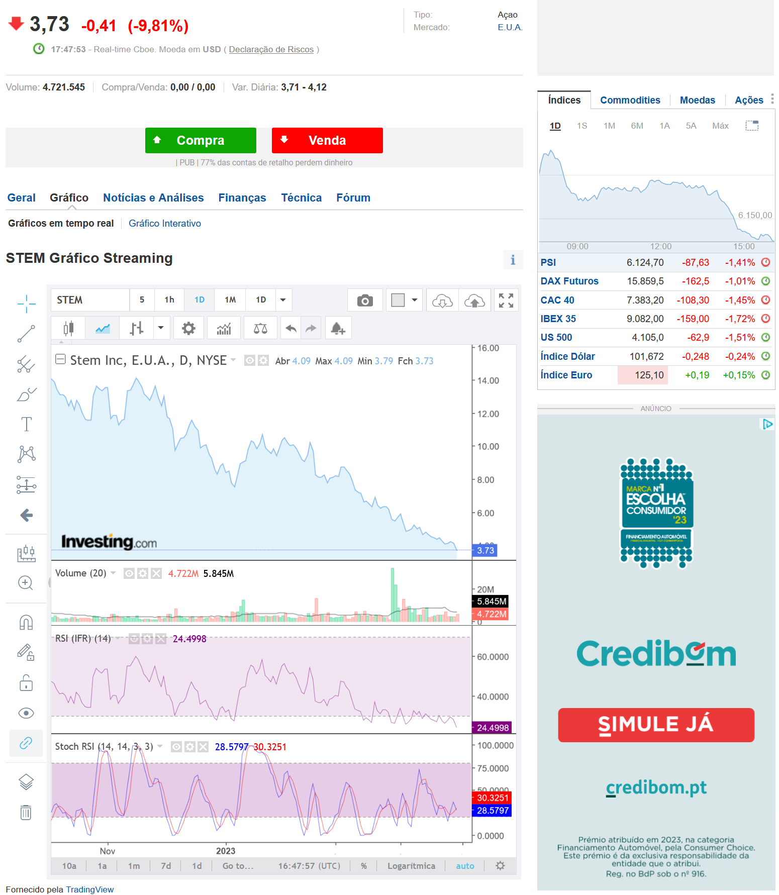Alguem me sabe dizer o que se passa com esta ação que vem sempre a cair ? indicador RSI em oversold desde março.