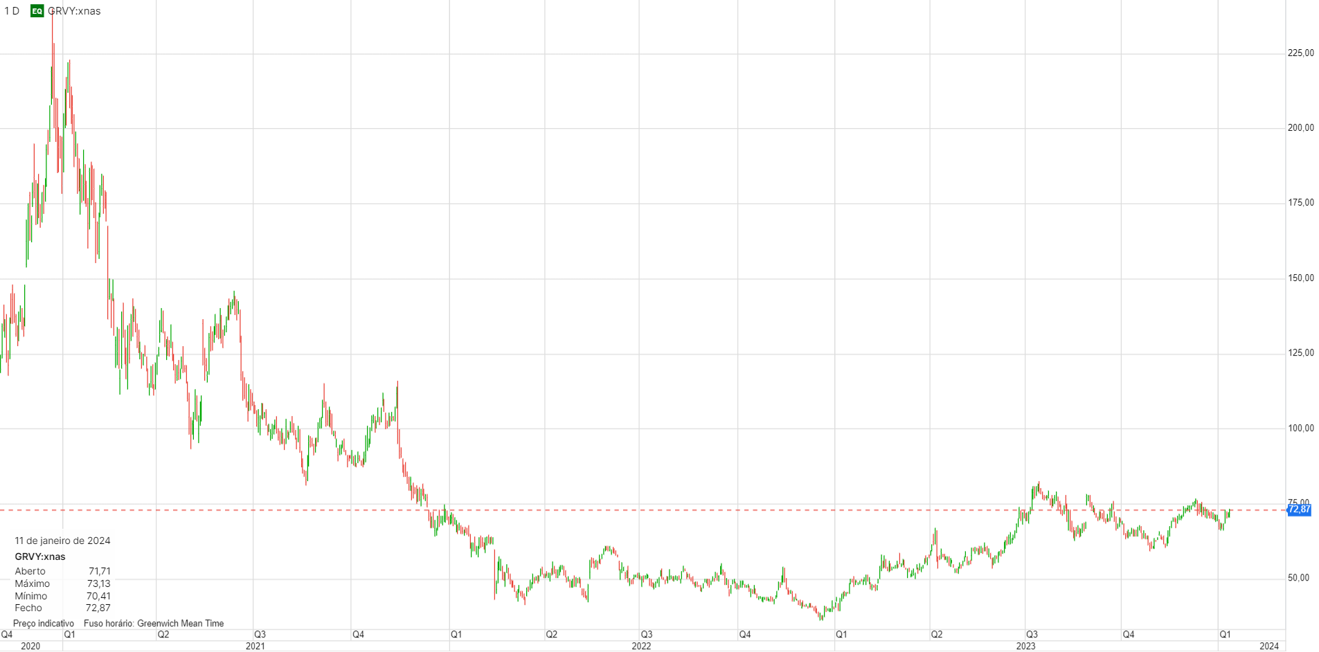 Anda por ali, mas mais próximo de quedas que de subidas.