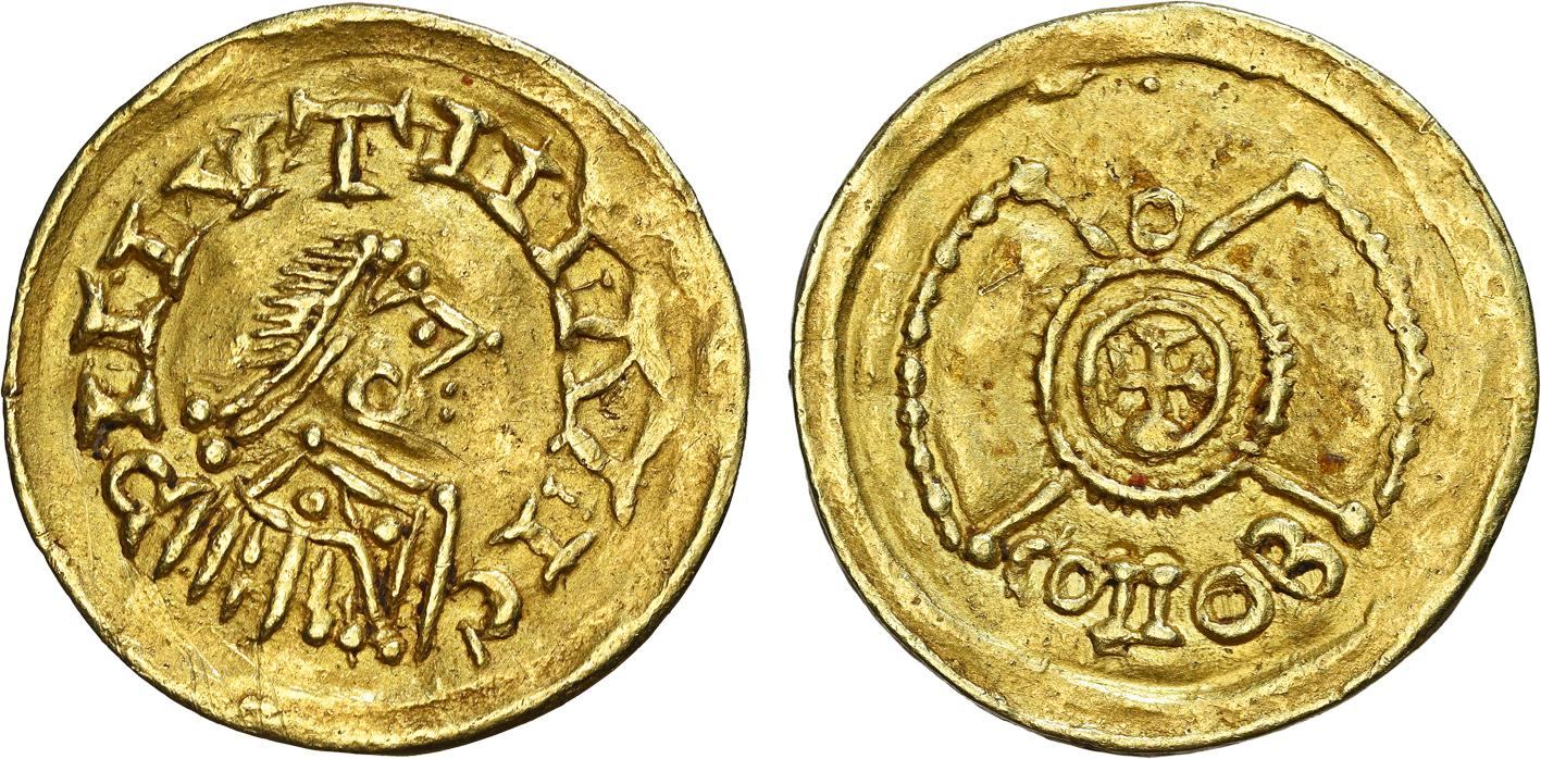 Numisma apresenta neste leilão um Tremissis muito característico doReino dos Suevos, um dos povos migrantes que na Idade Média cruzaram a Europa, de oriente para ocidente, atacando e pilhando muitas das principais cidades do mundo romano. Numa odisseia semelhante à dos Visigodos, este povo acabou por se instalar, com permissão do imperador Honório, na parte Norte do ocidente da Hispânia, estabelecendo a capital em Braga, num reino que prevaleceu durante a maior parte dos séculos V e VI da nossa era. Bateu moeda semelhante à romana, soldos e terços de soldo, hoje considerada a mais rara das espécies medievais europeias, de que não terão sobrevivido mais de duzentos exemplares.