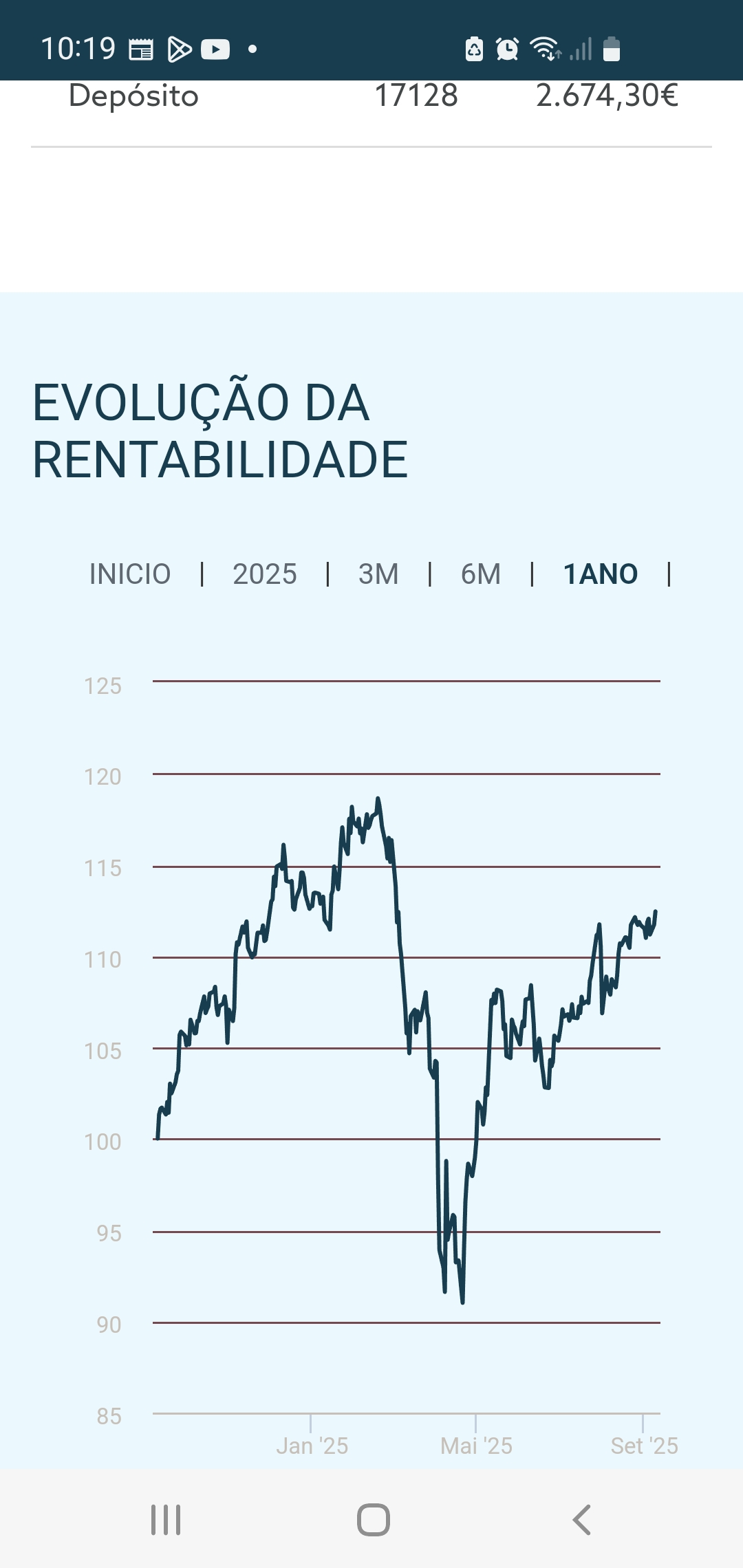 Bom eu tenho la algum dinheiro, e tem sido uma montanha russa comecia em junho do ano passado 2024, em dezembro estava com 7% em maio desta ano esta negativo agora estou com 5%.