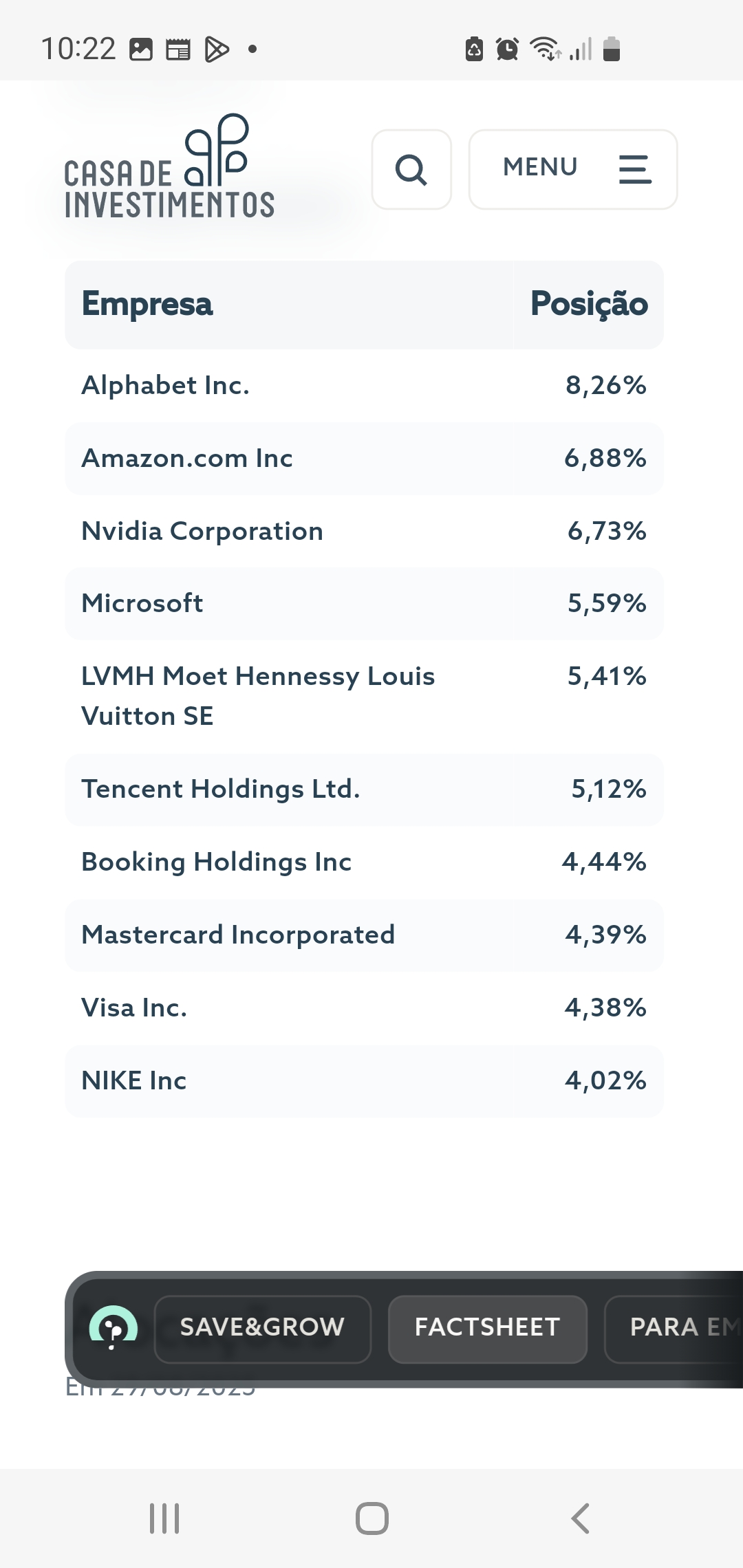 de resto na factsheet +40% é big tech e +70% tem risco USD...