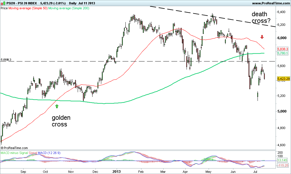 Conforme referi ontem, na próxima quarta-feira, 17 de Julho, deveremos ter a death cross no PSI-20.
