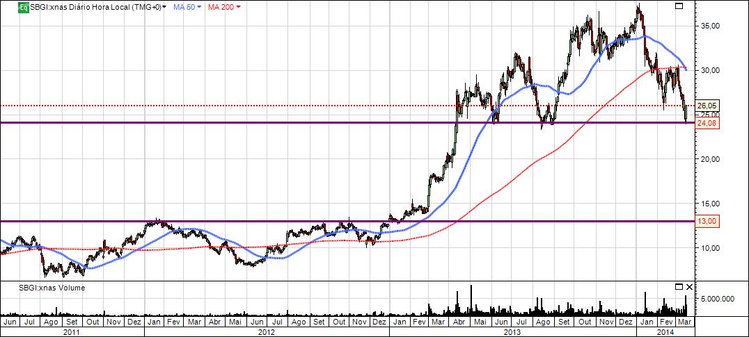 Depois de uns meses a respirar a SBGI criou um suporte na zona dos 25$. A perda deste valor fará com que deixe de ter expectativas bull para o título.