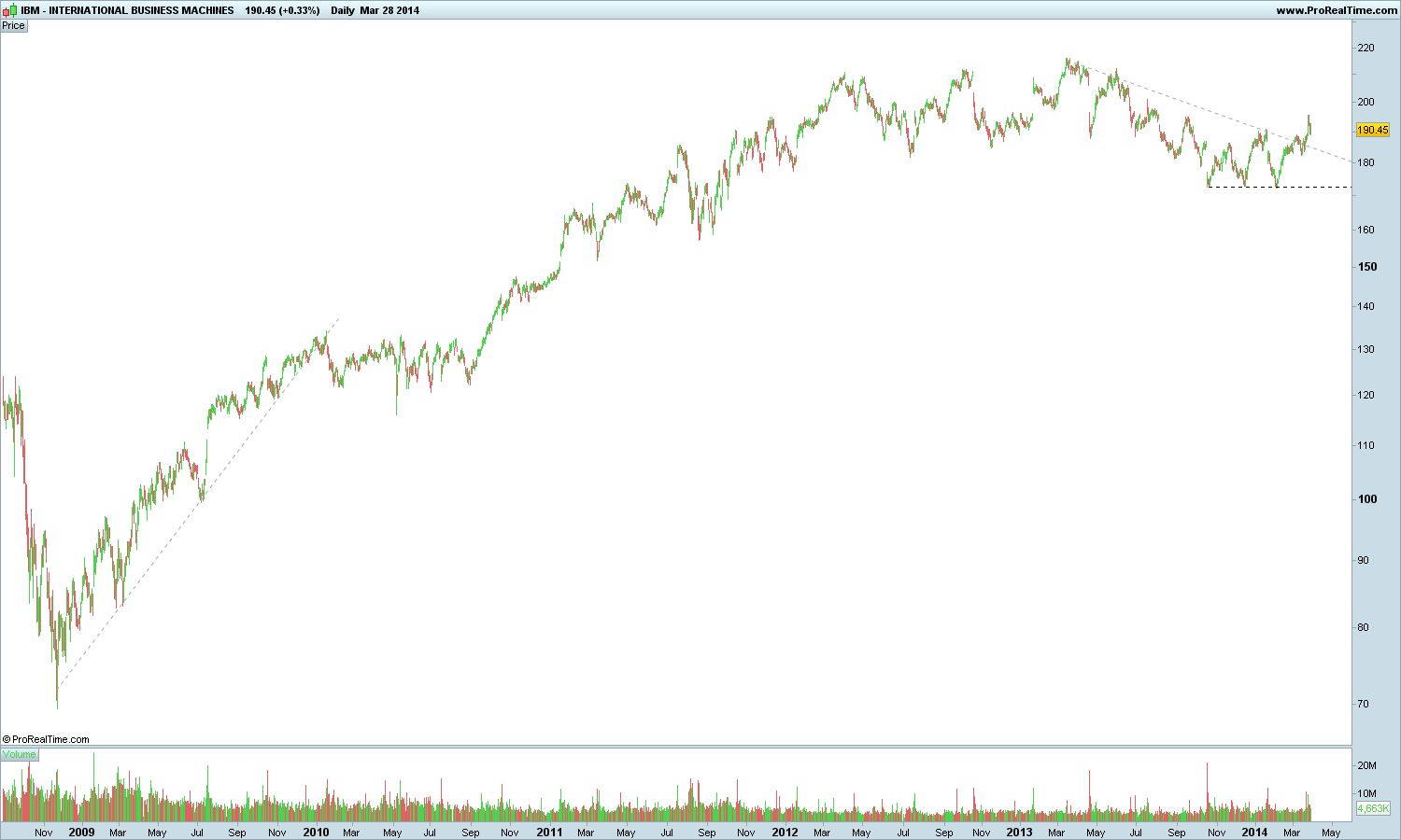 Já viste desde começou o resgate e programas de ajustamento na Europa, e muito particularmente o resgate português em Junho 2011 que a IBM tem andado sempre acima dos 160usd e nunca mais veio abaixo do preço a que estava em Junho 2011?