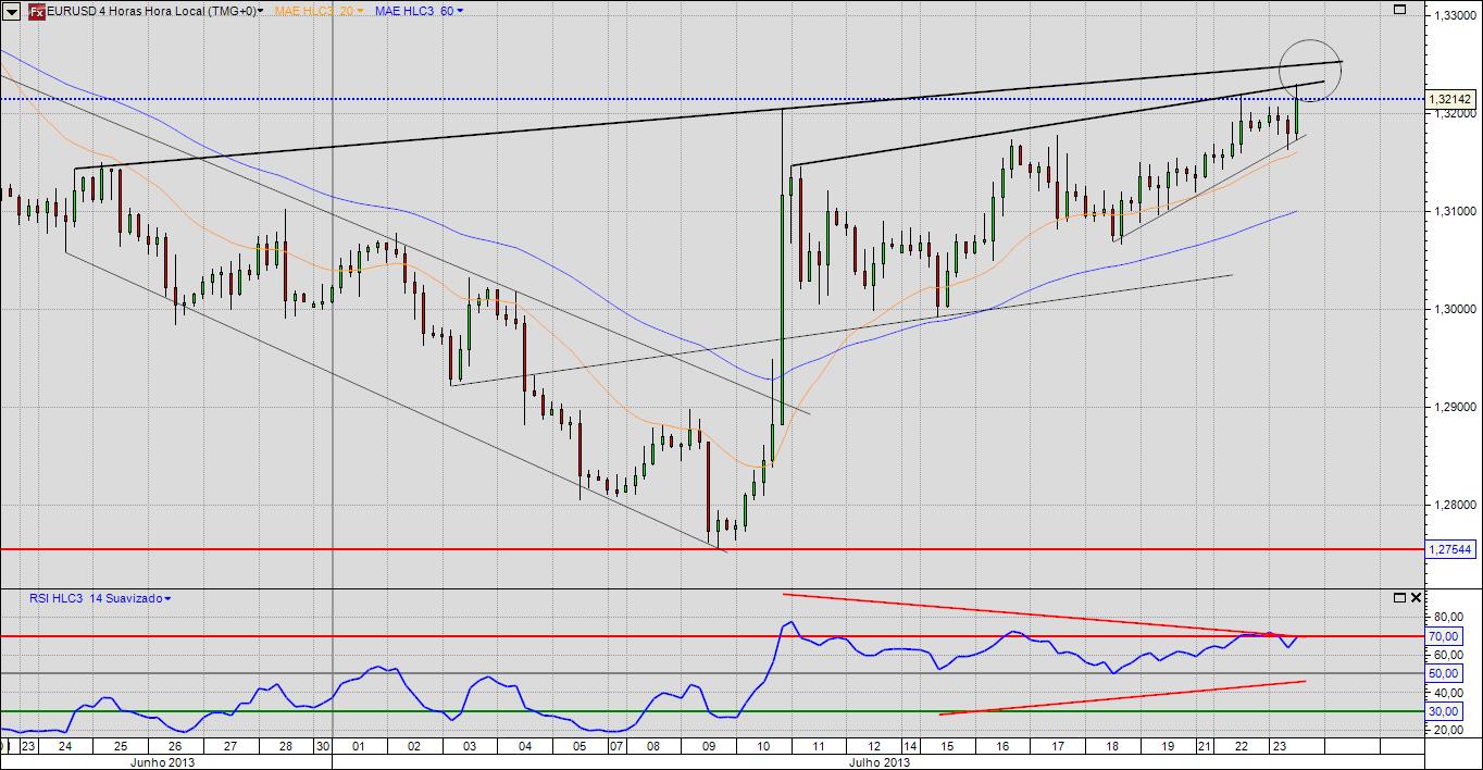 Se rebentar com o máximo de 1,3202 verificado no dia 10 de julho pode ir até aos 1,34xx.Hoje andou por lá a rondar, foi inclusive até aos 1,3218, aproximadamente, mas não aconteceu o breakout.
