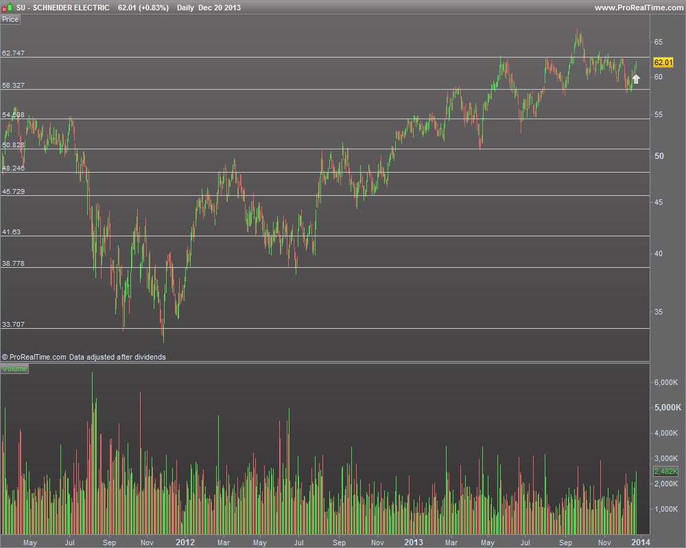 A Schneider tem vindo a recuar a toda a velocidade, depois de ter ido aos 66,99 em Setembro, começou a recuar e já está nos 60,33 - bem abaixo do suporte.