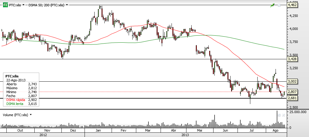 A quebra em alta dos 3,00 levará a um reforço de posição.