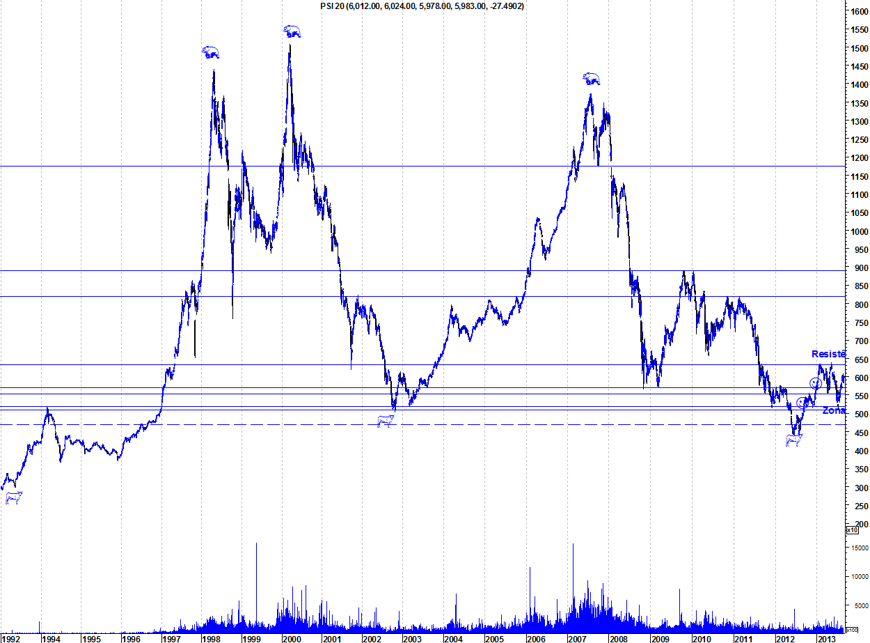 Assim volto a apanhar o PSI-20 ainda acima dos 6000, com alguns dias de fortes subidas, sustentadas pelas notícias positivas que têm surgido da Europa, e do ritmo da nossa economia. No entanto penso que estamos próximos de uma retracção, para procuprar novos suportes e ganhar novo fôlego para conseguir quebrar os máximos atingidos.