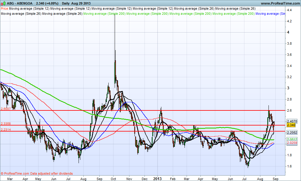 A Abengoa parece ter escapado às recentes subidas no mercado espanhol, que aliás está atrasado na recuperação face ao português. Em face dos fundamentais, e por motivos de AT também, parece ser uma boa opção de investimento neste preciso momento.