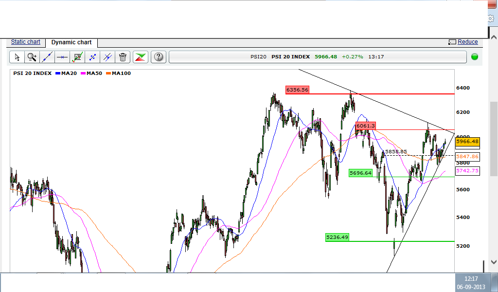 Não conseguindo definir qualquer tipo de direcção futuro para o PSI, tenho visto com bons olhos este suporte nos 5900. Na conjuntura actual, estar-se a aguentar por ali trás-me boas sensações.