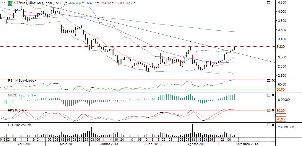 Um fecho acima dos 3,24 seria um sinal muito bom para a PT. Aguardo.