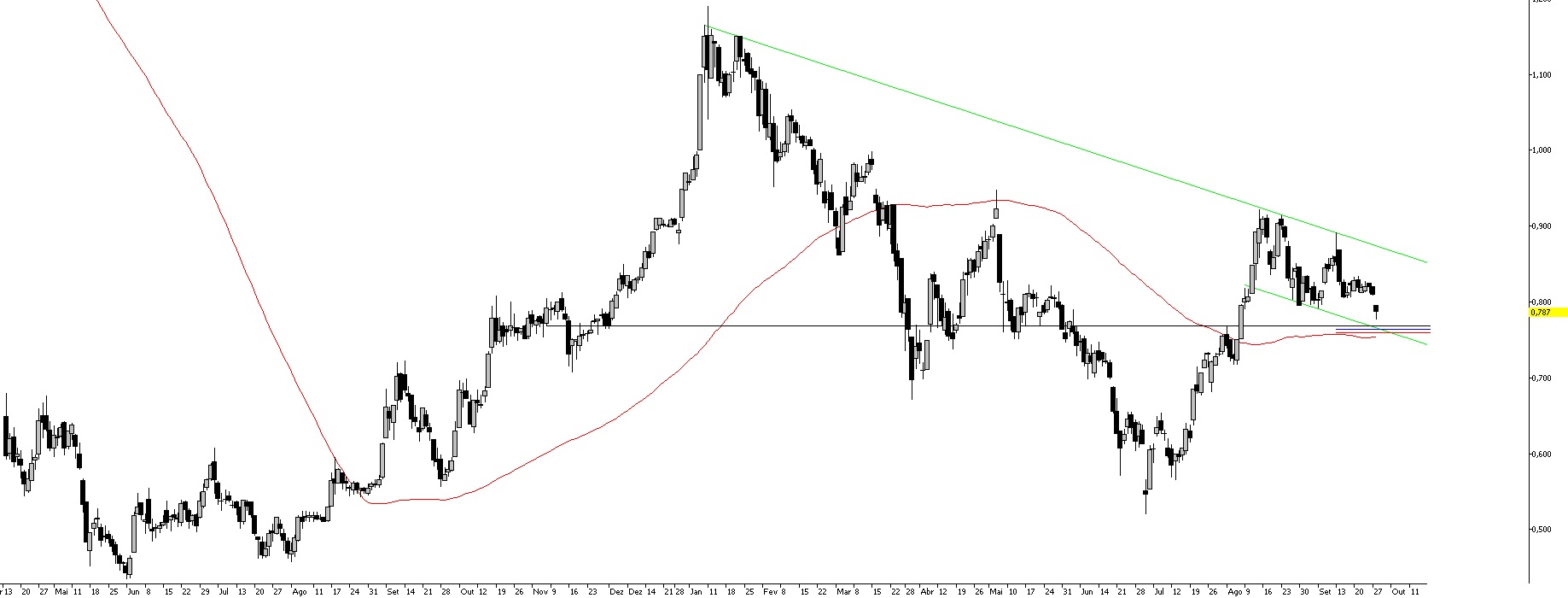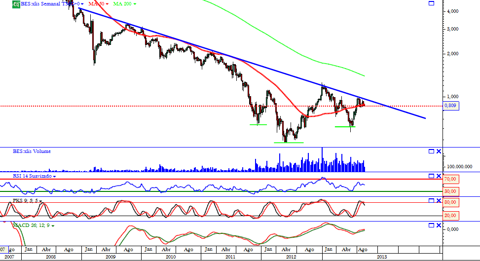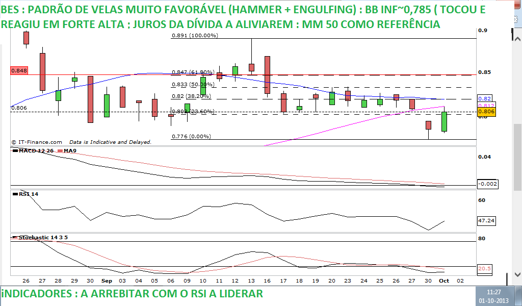 Não deixa de ser curioso que nesta "mini recuperação", o BES se vá situação acima do suporte na zona dos 0,80 €.