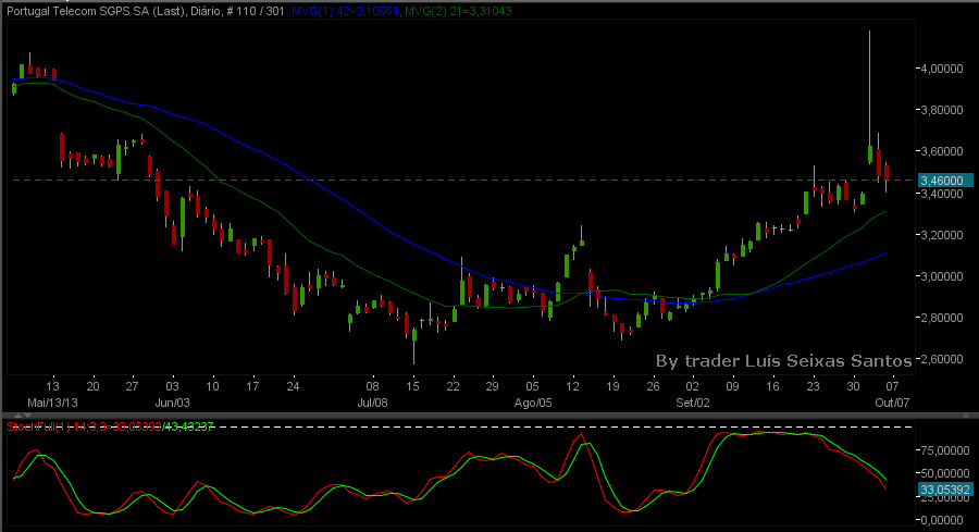 6. Uma coisa é certa, se os states resolverem os assuntos pendentes, e a aprovação do OE para 2014 se processar com normalidade, (entenda-se normalidade sem muito ruído provocado pelo TC). A PT, bem como, o psi20, poderão ambicionar a quebra, consistente, do rota descendente de médio prazo, em que estão mergulhados desde meados de Janeiro de 2013, a esta parte. Além disso se os resultados de 14.11.2013 ajudarem, poderá a PT voar um pouco, até à zona dos € 3,80; € 3,90.