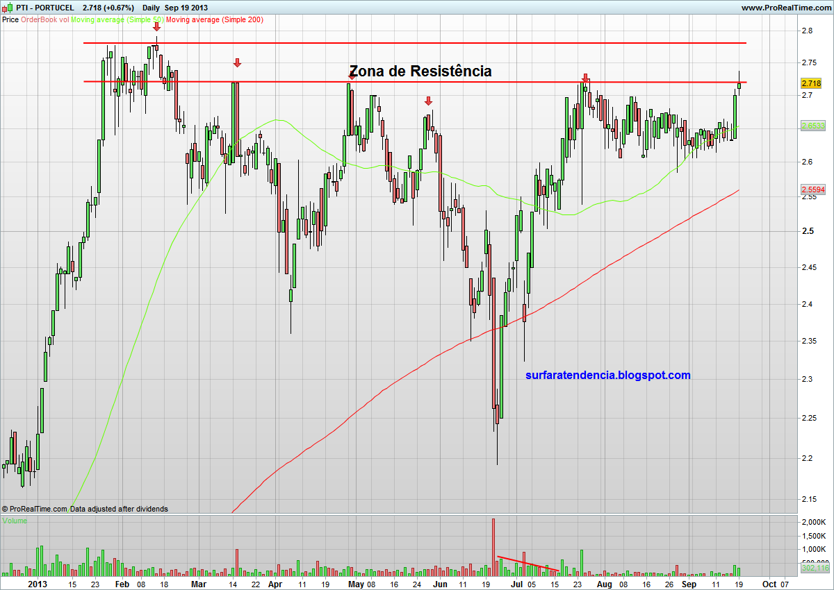 Posto isto, com o dia de hoje penso que a cotação virá novamente aos valores em que negociou nas últimas semanas (junto ao pescoço) antes de arrancar definitivamente, a cotação andou muito tempo entre os 2,60 e os 2,70 e este afastamento desses valores deverá ter efeito psicológico em quem negoceia o titulo com mais frequência pelo que fará toda a lógica um teste (2,65/2,70) antes do afastamento decisivo.