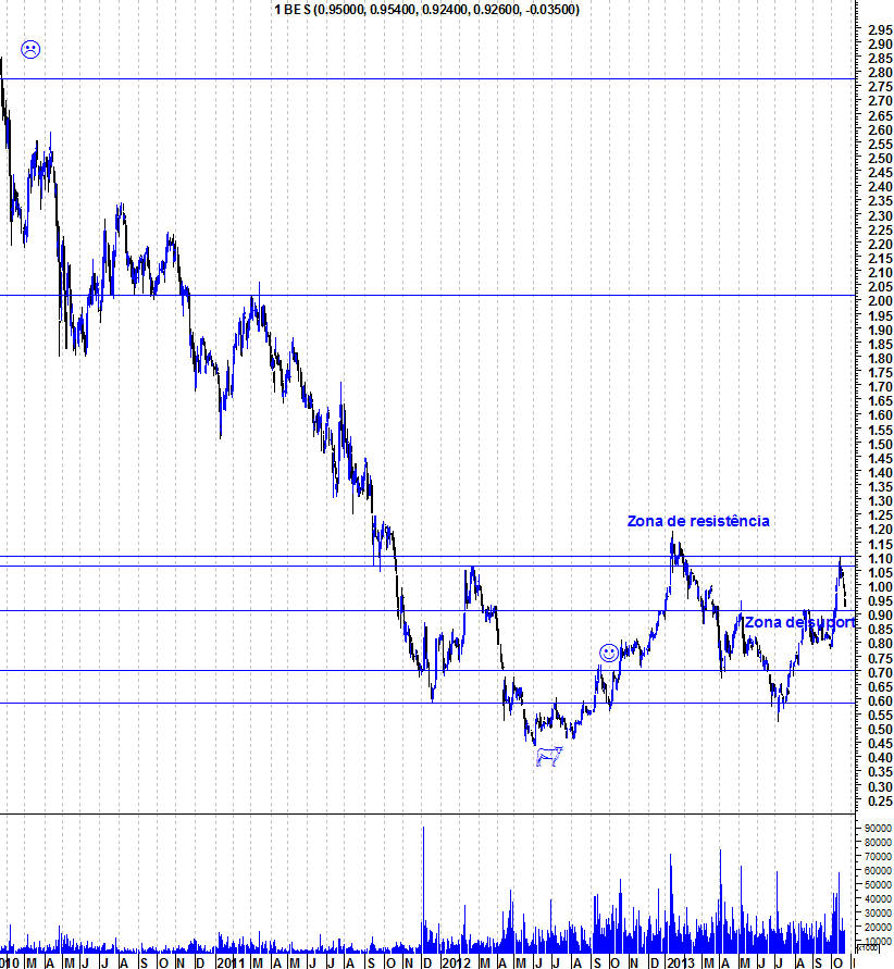 O Bes bateu há alguns dias atrás numa resistência com a mesma importância que tem a dos 6400 no PSI e que ontem provocou o recuo do índice.