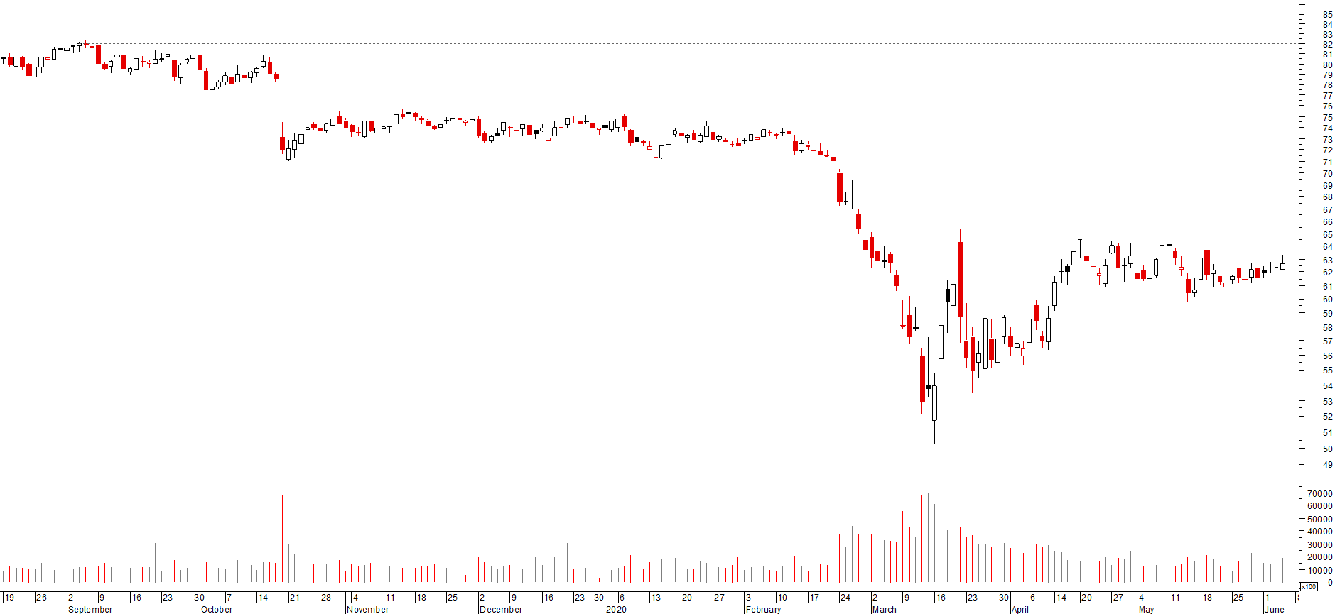 Danone não conseguiu superar os 56 euros e veio por aí abaixo, teve hoje o fecho mais baixo em 10 meses.