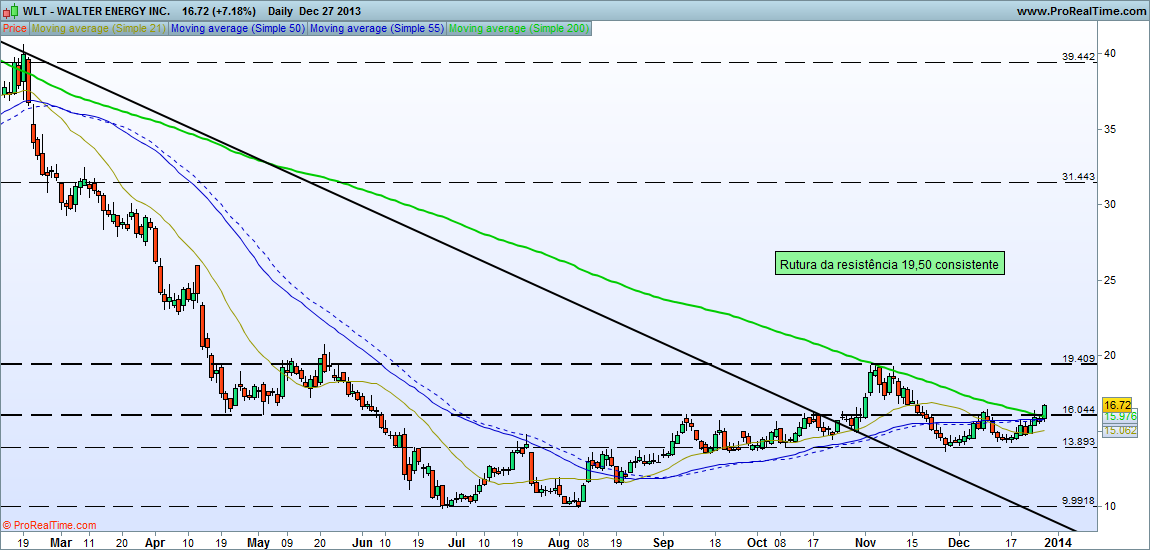 Tem uma resistência pelos 16, mas um sinal de força seria a rutura dos +- 19,50 consistente.